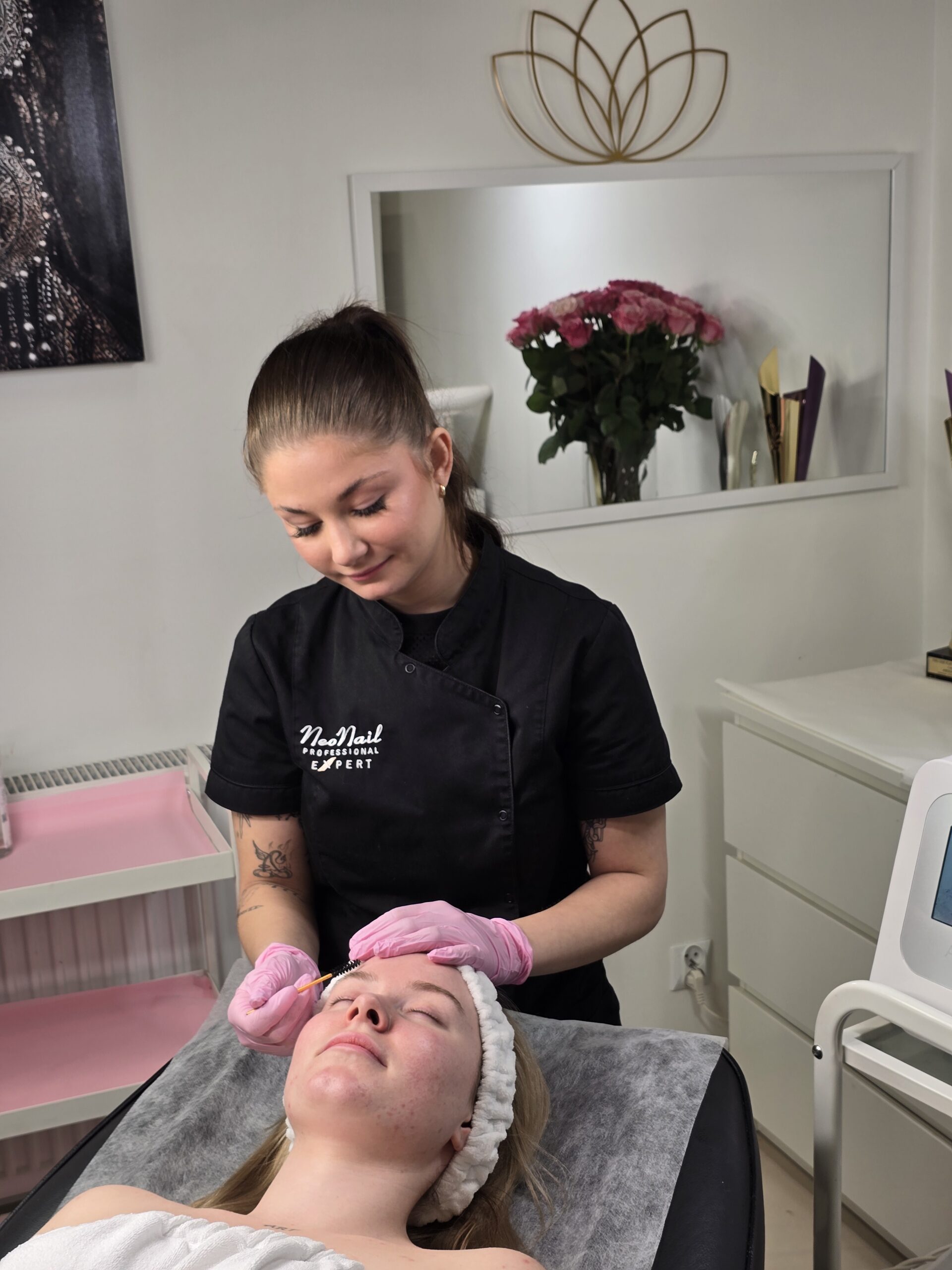 Dzięki odpowiednim technikom oraz preparatom możliwe jest uporządkowanie włosków brwi, ich delikatne podkreślenie kolorem, a także uniesienie i optyczne wydłużenie rzęs.